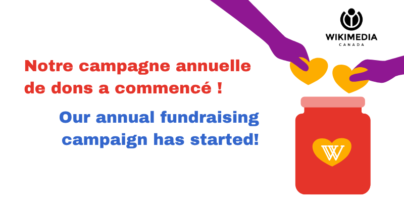 Votre contribution fait avancer le savoir libre au Canada ! Faites un don aujourd’hui pour nous aider à faire avancer le mouvement pour la connaissance libre et soutenir les initiatives wiki à travers le pays.