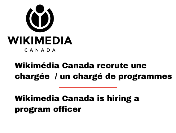 Wikimedia Canada is hiring a Program Officer. Under the supervision of the Executive Director, the person in this position is responsible for implementing various programs identified by the organization: WikiClubs, Francophonie, Indigenous Culture and Knowledge, High-Impact Topics, Collective for Free Knowledge, and Research and Development. They oversee the execution and supervision of projects related to these programs. Additionally, they propose and carry out activities aimed at enhancing the organization’s visibility.